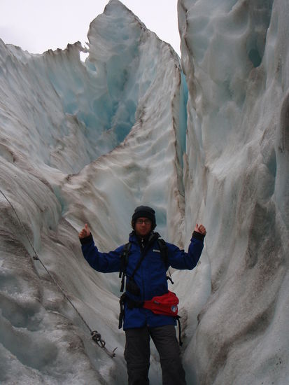 Ankunft in Franz Josef, dessen größte Attraktion der "Franz Josef Gletscher" ist, benannt nach unserem ehemaligen Kaiser! Wir buchten eine Halb-Tages Tour um den Gletscher zu erkunden, ausgerüstet mit Steigeisen war das Wandern auf dem Eis kein Problem, am Abend entspannten wir uns in den Hot Pools. Das eigentliche Ziel unserer Reise ist ja, immer der Sonne hinterher, aber nun haben wir inzwischen einen Gletscher bestiegen und das heiße Wetter dass wir von Australien kannten, gab es hier nicht mehr - meistens war es kalt, windig und es nieselte...