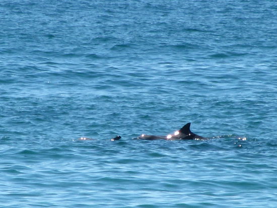 Das Highlight des Tages war gleich mal eine Delphin Sichtung in der Bucht, ca 10 Delphine waren gerade auf der Jagd und zogen ihre Runden durchs Meer...