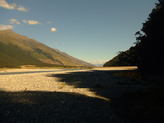 In Queenstown habe ich außerdem Shai wiedergetroffen, einem Israeli, dem ich an den unterschiedlichsten Ecken der Südinsel schon fünfmal begegnet bin, zuletzt in Tekapo, wo wir geplant haben, dass wir mal zusammen 'nen Track wandern. Gesagt getan. Während Marian nun die Westküste hochfährt, bin ich mit Shai nach Wanaka gefahren, von dort aus, am Montag, weiterter nach MAKARORA, wo der Track zum Gillespie Pass beginnt.