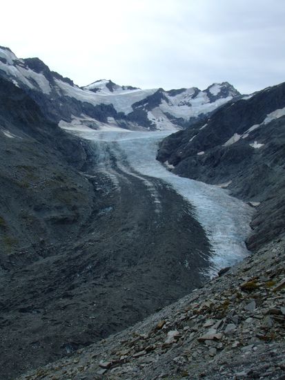 Das Tal durch das man geht ist ganz anderes als die anderen. Es besteht hauptsächlich aus grauem Geröll, Felsen und Staub. Eher eine tiefe Schlucht. Von den "Wänden" rauschen lange Wasserfälle, die aus dem blauen Eis, mit dem die Bergspitze bedeckt ist, entspringen, in die Tiefe. Das sieht total schön aus. Am Ende des Tals ist ein großer Gletscher. Den Berg danaben mussten wir hoch und es gab zum Teil nichtmal einen Pfad. Sehr schwieriger Weg und ich war noch nie so am Ende. Ich war den anderen stets ein ganzes Stück hinterher. Am liebsten wäre ich zusammengebrochen und liegen geblieben, vor allem wenn ich an den langen Rückweg gedacht habe. Hoch oben wurde ich dann auch noch fast vom Wind weggeweht. Den Tränen nahe wäre ich am liebsten umgekehrt, die anderen waren allerdings zu weit vorraus, als das ich ihnen hätte bescheid sagen können. Also Zähne zusammen und fluchend weiter.