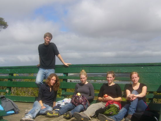Spätnachmittags kamen allerdings drei Leute, die wir in dem Hostel in Auckland kennen gelernt hatten, das machte den Ort um einiges erträglicher. Lena, Niklas und Jaqueline, mit denen haben wir gegessen, lustige Spieleabende gemacht (Mama, z.B. unsere Stadt-Land-Fluss Version - unglaublich lustig!!) und vor allem waren wir wandern. An den Whangarei Falls vorbei, am Fluss entlang, einen unglaublich steilen langen Weg einen Berg hoch, auf der anderen Seite wieder runter und da wir ja gerade in der "Nähe" waren noch zu den Abbey Caves (Tropfsteinhöhlen mit Glühwürmchen mitten in der Pampa, nicht als Touristenattraktion hergerichtet, stehen aber im Reiseführer. Zugang ziemlich schwierig, man klettert über Felsen und watet durch eiskaltes Wasser... abenteuerlich. ), von dort zurück in die Stadt und in Richtung Hostel, das etwas außerhalb am anderen Ende lag. Kurz: Alles in allem sind wir in sieben Stunden etwa 30 km zum großen Teil steilen und schwierigen Weg gelaufen. Abends tat alles weh, wir waren dreckig und müde, aber im Nachhinein klingt dieses verrückte Erlebnis ziemlich cool.
