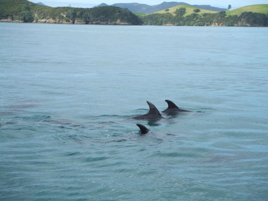 Nach drei kalten aber durchgestandenen Nächten ging es dann weiter hoch nach Norden. Unser nächstes Ziel: Paiha, Bay of Islands an der Ostküste. Kurz nachdem wir hier ankamen, haben wir gleich eine Dolphin-Watching Tour gemacht. Irgendwo draußen zwischen den 144 Inseln des Bay of Island haben wir einen Schwarm 3-4 m große Delphine gesehen. Mit denen auch zu schwimmen ging an diesem Tag allerdings nicht, aber dazu werden wir auch an etlichen anderen Orten noch Gelegenheit haben.