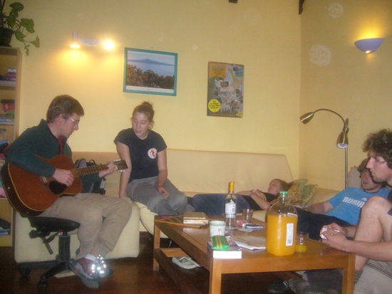 Nach Piha sind wir zurück nach Auckland gefahren und haben zwei Nächte in einem recht gemütlichen Hostel verbracht, das zu der Zeit ziemlich viele Leute beherbergte. Wir haben wirklich nette Leute kennen gelernt, größten Teils aus Deutschland, da NZ unter den deutschen Reisenden sehr beliebt ist. In der Küche kocht sich jeder wie er will irgendwas zu Essen, später finden Spieleabende (Pictionary!!) statt, Austausche über das bereits Erlebte und Pläne... In dem Hostel gab es sogar eine Gitarre und wie es oft so kommt, wird aus ein bisschen Rumgeklimper immer mehr. Schließlich hab ich mit jemandem aus Atlanta zweistimmig "I've just seen a face" von den Beatles gesungen. Das war der Wahnsinn, ehrlich gesagt eine der tollsten Neuseelanderfahrungen bis jetzt. Ich meine man trifft einfach jemanden von was-weiß-ich-wo, singt und es klingt gleich supertoll - und obwohl so viele Leute zugehört haben, hab ich trotzdem gesungen... In Neuseeland ist es eben anders.