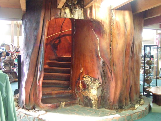Auf der Rückfahrt hielten wir an einer Kauri-Werkstatt. Hier wird aus dem tausende Jahre alten Kauri Holz allerlei tolles Zeug hergestellt, wie Skulpturen, Möbel, Uhren, Spiegel (...) und natürlich jede Menge Touristenklüngel. Am allerfaszinierendsten war aber der dicke Kauribaumstamm in der Mitte des Gebäudes, in den innen eine Wendeltreppe eingearbeitet war, sodass man durch den Baumstamm in die Etage drüber gehen konnte. Das war der Wahnsinn!!