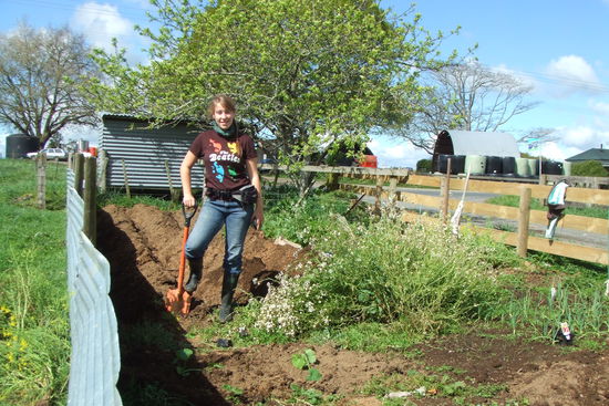 Heute morgen sind Caro und ich in aller Frühe nach Cambridge gefahren, das ist eine kleine Stadt etwa 2 1/2 Stunden unter Auckland. Etwas außerhalb liegt eine Farm, auf der wir bis Mittwoch für Kost und Logie arbeiten (= wwoofing - Willing Workers On Organic Farms). Wir haben einen ganzen Katalog voller solcher Adressen, viele Farmen sind aber schon ausgebucht - von den doofen DEUTSCHEN Backpackern. Darum können wir auch nicht länger bleiben, aber wir waren wirklich froh, diesen Ort gefunden zu haben, um endlich etwas Geld sparen zu können, das einem wie Wasser durch die Finger rinnt und außerdem einen Einblick in das neuseeländische Leben zu bekommen. Trotz einer kleinen Beschreibung in dem Wwoof-Katalog kann man nie wirklich wissen wo genau man hinkommt, wir haben auch schon mit Leuten gesprochen, die das Pech hatten auf einer ganz heruntergekommenen Farm zu landen... Aber wir haben echt Glück. Hier sind noch andere Wwoofer (aus den USA) und wir wohnen mit denen in einem extra Haus. Unsere Gast-/Arbeitgeber sind sehr nett und sie haben vier Kinder im Teenageralter. Außerdem etwa 130 Kühe, 40 Hühner, ein schneeweißes Pferd, Hund, Katze, Maus... Es ist also immer etwas los und es gibt viel zu tun.