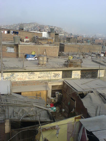 Das ist ein Teil von San Juan de Lurigancho mit dem örtlichen Gesundheitszentrum im Vordergrund. Hier wohnen die besser betuchten! Die Häuser sehen von außen alle so aus als könnten dort unmöglich Menschen wohnen.