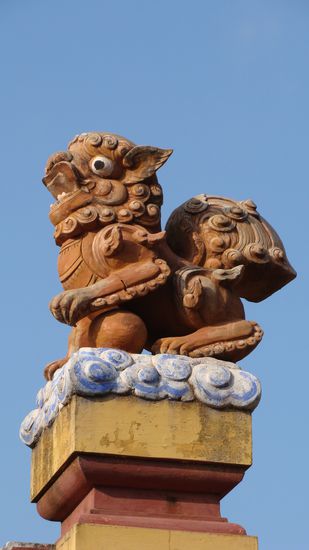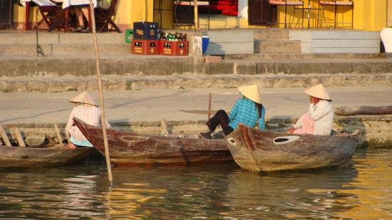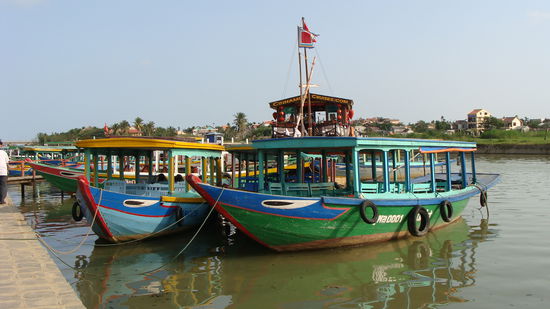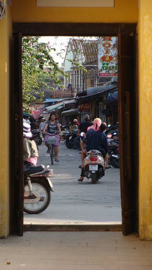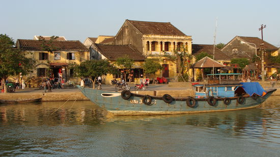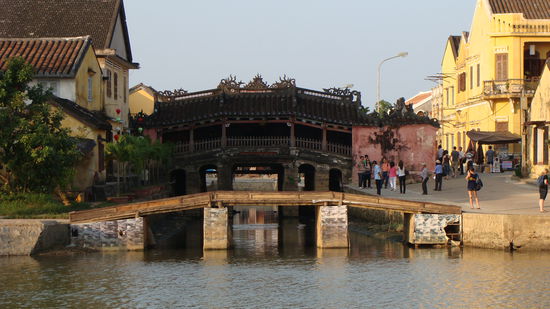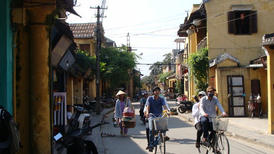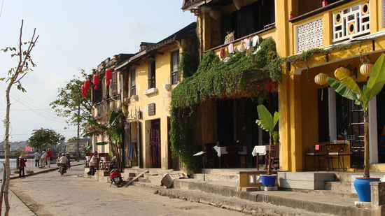 Fuer mich ist Hoi An die grosse Schwester von Luang Prabang, weil sie die gleichschoene waerme ausstrahlt, allerdings viel chaotischer und auch schneller ist; man bekommt die typisch Vietnamesische Verhandlungslust der Einheimischen recht schnell zu spuehren. Es gibt ein Paar huepsche Tempel, die beruehmte japanische Bruecke, nen kleinen Markt, ne schoene Flusspromenade, Lokales Essen (Fisch im Bananenblatt hat echt super geschmeckt!), jede Menge Restaurants, Bars und Cafes die taeglich Kochkurse anbieten, Fahradverleihs, Internetkafes, Reisebueros und schoene Hotels und auch diverse coole Bars zum Ausgehen, wo man Billiard spielen kann (Bitte schaut dabei auf die Uhr, Simon musste ne Nacht bei einem Kellner zu Hause uebernachten (er hatte Glueck!), da er nichtmehr ins Hotel reingekommen ist...abgeschlossen.) Hoi An ist auch durchaus eine Stadt, wo man mit Kleinkindern ohne Problem bereisen kann.
