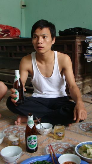 Aja und wenn ihr Mal mit Locals, oder noch besser- meinen Freunden von Couchsurfing Abends in ein Locales Restaurant geht wundert euch nicht, dass gleich ne Harasse Bier angekaren wird... Das ist ueblich in Vietnam...Damit man nicht staendig auf sein neues Bier warten muss... Bezahlt werden nur die offenen Flaschen und gekuehlt wird mit einem Eis im Glas... (Auch wenn das ueberfluessigerweise mit der Zeit das Bier verduennt... leider)