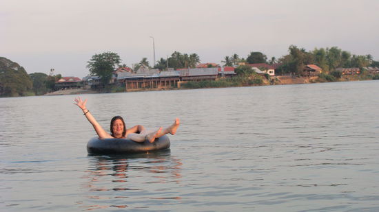 So bin ich dann doch noch zu meinem Tumbing gekommen! Aa das macht freude! Ich, der Mekong und ein Traktorreifen... traumhaftes Wetter und ein kaltes Bier!