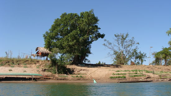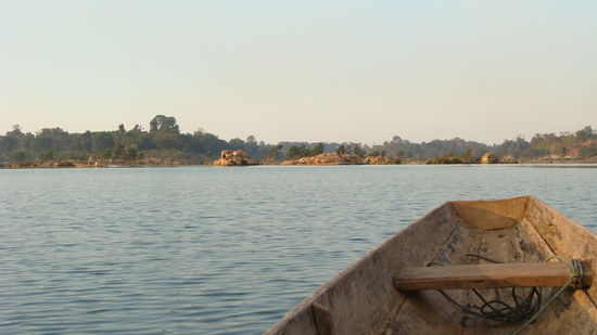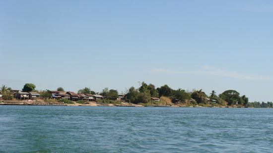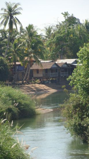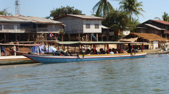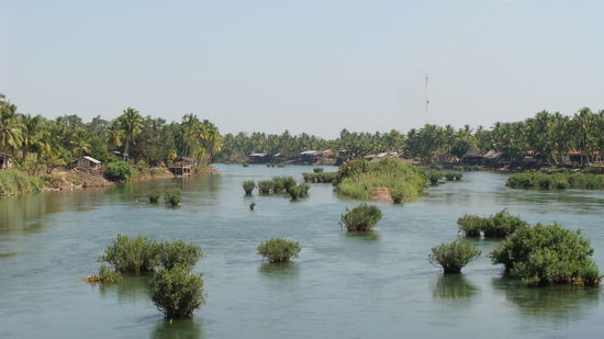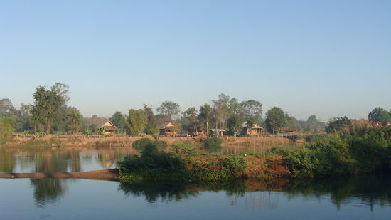 Irgentwann noch am Morgen bin ich mit ner kleinen Busladung an der Anlegestelle fuer die Boote nach Don Det und Don Khon angekommen und in schwup di wup war ich auch schon in einem der Boote auf dem Weg nach Don Khon (der einsameren Insel, der Beiden)...