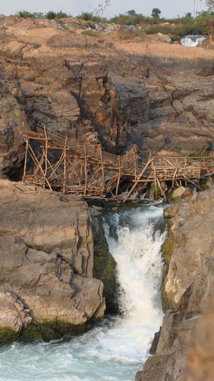Nach de Fruehstueck sind wir auf die andere Insel Don Det ueber die Eisenbahnbruecke (die einzige Eisenbahnlinie, die jemals in Laos gebaut wurde, von der jedoch heute nichts mehr zu sehen ist) auf Endeckungsreise