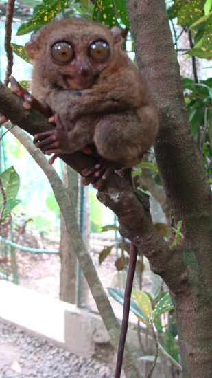 Danach gings weiter zu den Tarsiern- Das sind so lustige Tierchen (ich wuerd mal sagen etwas zwischen Frosch und Affe), hat ne aehnilichkeit von nem Furby und ist irgentwie doch ganz niedlich...Diese Tierchen mit ihren unbeweglichen Riessenaugen sind eigentlich nachtaktiv und ganz scheu, jedoch ist das eines der Touristenatraktionen auf Bohol, weswegen die Tierchen eingefangen werden, damit die touris die bei Tag anschauen koennen...Komische Tierchen...
