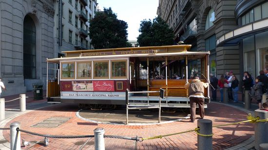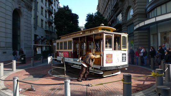 die Cable Cars, werden noch paar Hand auf einer Drehplattform gedreht
