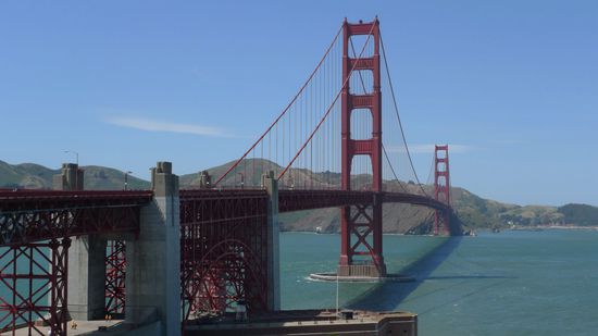 Dann fuhren wir mit dem Bus weiter bis zur GoldenGate Bridge und gingen bis zum ersten Pfeiler. Auf der Brücke war es sehr windig und auch dementsprechend kalt.