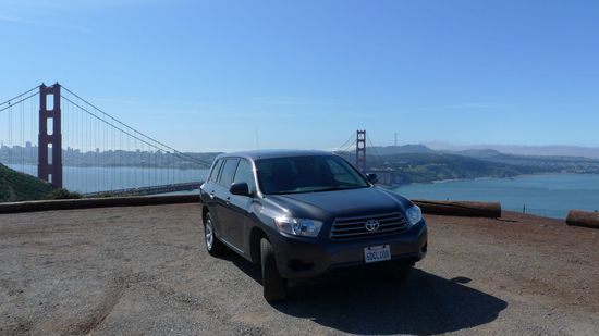 Unser Auto für die nächsten 14 Tage ist ein schicker Toyota Highlander. Er ist 4,78 Meter lang und bietet somit geradso ausreichend Platz für 2 Leute. Dank Allradantrieb und einem V6 Motor mit 270 PS kommen wir auf der Straße gut vorran. Schade ist allerdings, dass man mit soviel Power unterm Ar*** nur Tempo 100 fahren darf