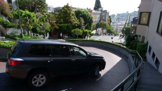 Zuerst sind wir mit dem Auto zur Lombard Street gefahren um die bekannten Kurven mit dem eigenen Auto zu durchfahren.