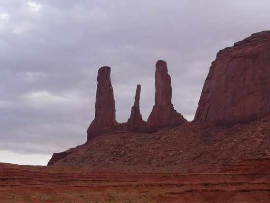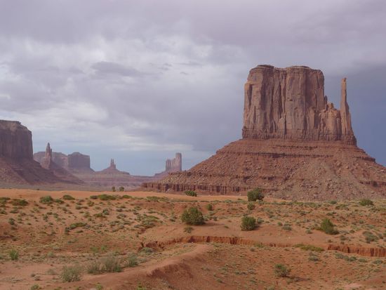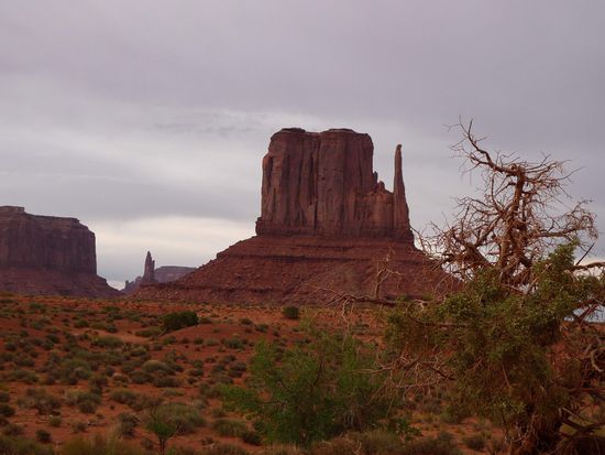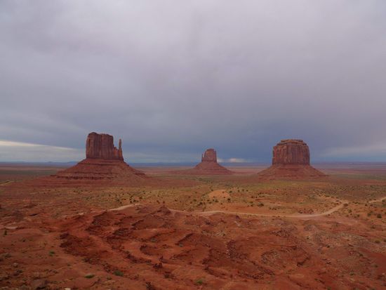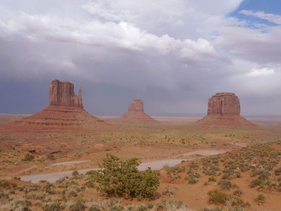Als wir am MonumentValley ankamen hat es glücklicher Weise aufgehört zu Regnen, allerdings war es immernoch sehr bewölkt wodurch uns hier keine tollen Fotos gelungen sind. Als wir Bilder von 3 bekanntesten Felsen machten sahen wir mehrere Blitze im Hintergrund welche Klasse zur Scenerie passten. Wir versuchten zuerst durch manuelles Auslösen, einen Blitz einzufangen was uns jedoch nicht gelang. Dann entdeckten wir die Serienbild-Funktion und schossen über 800!!! Fotos, aber es wollte sich einfach kein Blitz mehr vor unserer Kamera zeigen.