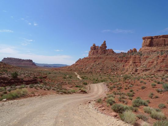 Heute morgen fuhren wir die 25 km lange Schotter-&Sandpiste durch das Valley of the Gods. Hier gibt es ähnliche Felsen zu sehen wir im bekannten Monuement Valley, jedoch sind diese hier etwas kleiner.