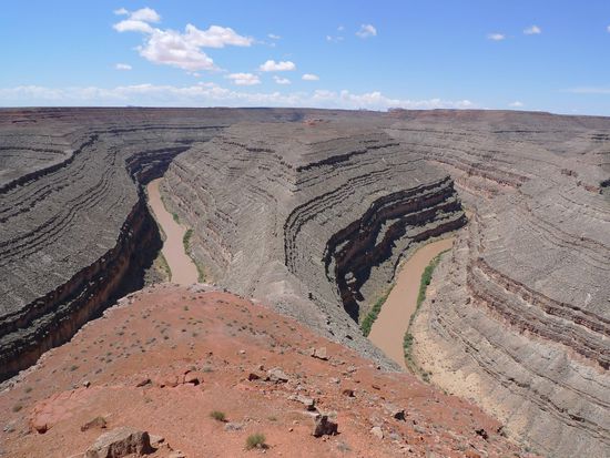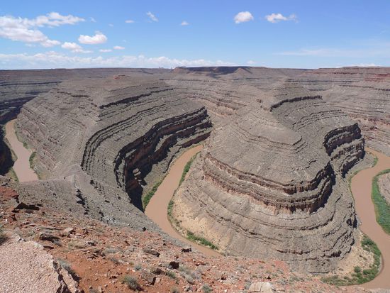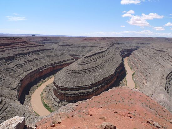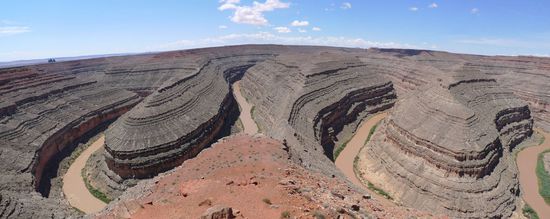 Ähnlich wie gestern beim HorseshoeBend schlängelt sich auch der San Juan River durch den Berg. Hier gibts sogar 3 Schleifen direkt nebeneinander zu sehen.