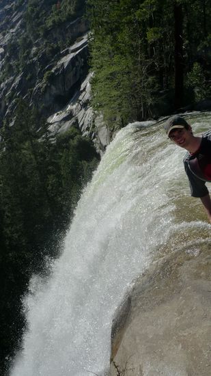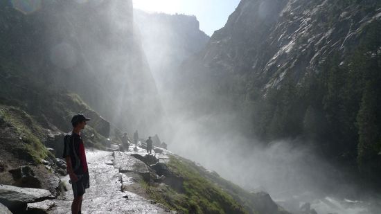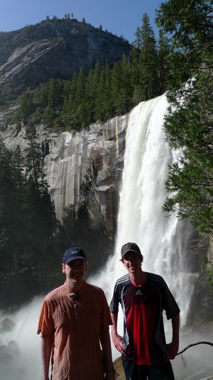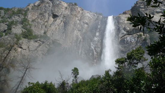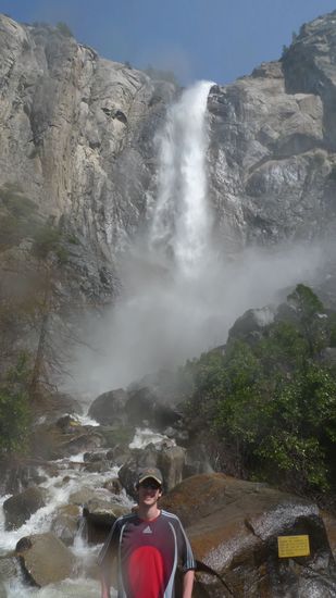 Im Park angekommen haben wir uns zuerst den 188 Meter hohen Bridalveil Fall angeschaut. Dieser war nur 100 Meter vom Parkplatz entfernt. Obwohl wir uns nur bis auf 30 Meter an den Wasserfall nähern konnten wurden wir aufgrund des stark verwehten Wassermassen schnell durchnässt und brachen nach einem Foto zum Rückzug auf.