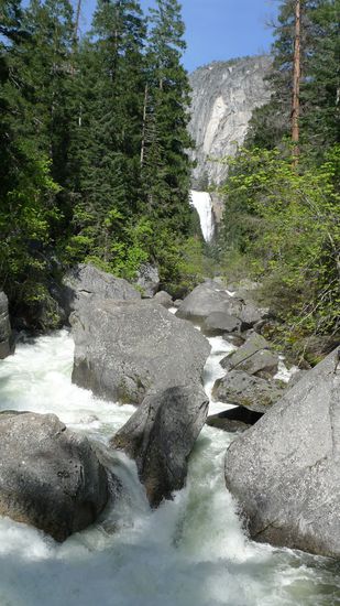Hier noch ein Bild aus dem Thal mit Blick auf die 739 Meter hohen Yosemite Falls.