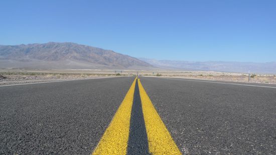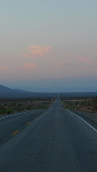 Abends fuhren wir noch 330 km bis zum Rande des Death Valley wo wir Mitten im nirgendwo übernachteten. Die Strecke dorthin verlieft überwiegend gerade aus. Streckenabschnitte von 30km ohne die kleinste Kurve waren dabei keinen Seltenheit.