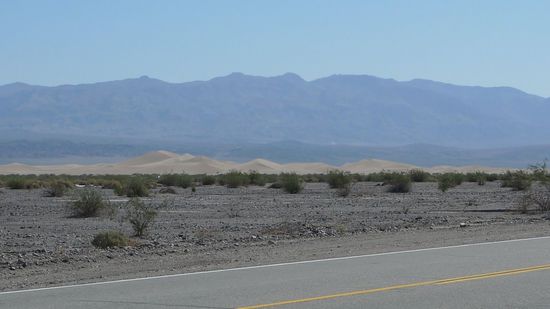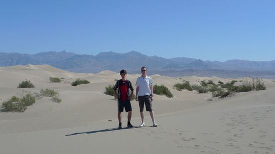 Gegen halb 10 erreichten wir die Sanddünen im Death Valley. Wir unternahmen einen kurze Wanderung bis zur ersten größeren Düne. Hierbei merkte man schon die enorme Temperaturen im Thal.