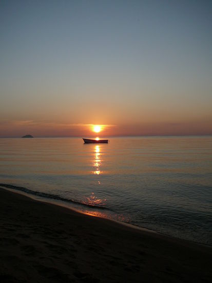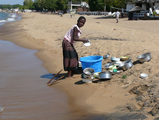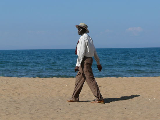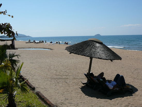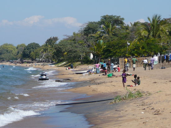 Der Lake Malawi ist der drittgrößte See in Afrika und bildet im Osten die Grenze Malawis zu Mosambik und Tansania. Seine Strände sind überwiegend ein Traum. An meiner Lodge erstreckt sich der breite Sandstrand so weit, dass man ihn unmöglich zu Fuß ablaufen kann. Ich versuche es trotzdem, frühmorgens gestärkt durch ein üppiges Frühstück