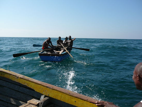 Mein Bootsmann verabschiedet sich, aber Ruth, seine Cousine, bleibt mir für den Rest des Nachmittags erhalten. Ich könnte zwar gut auf sie verzichten, aber sie stört auch nicht und findet mächtig Gefallen an meinem mp3-Player. Im Prinzip ist es sogar ganz nett, denn mit einer Einheimischen findet man viel zwangloser Kontakt zu den Dorfbewohnern am Strand. Und die Preise für Getränke oder Bananen von den Strandverkäuferinnen fallen auch niedriger aus.