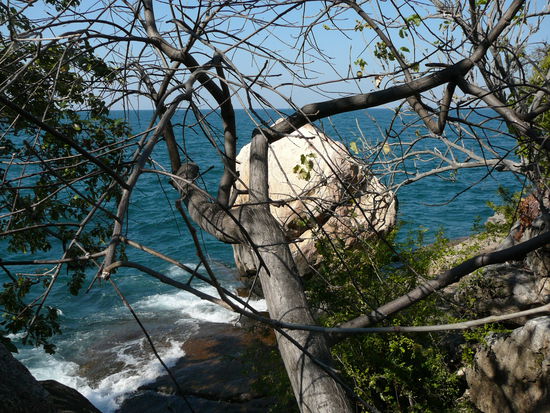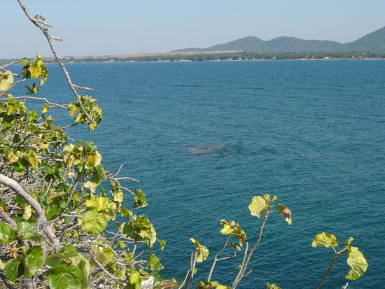 Mein Bootsvermittler ist pünktlich und hat neben dem Boot samt Bootsführer auch noch irgendeine Cousine im Schlepptau, die gerade zu Besuch ist. Wir fahren eine halbe Stunde zur "Lizard Island", einer Insel, die, glaube ich meinem Guide, geradezu atemberaubend große Echsen beherbergt. Sehr viele bekomme ich von diesen Exemplaren nicht zu Gesicht. Sie sind sehr schreckhaft und verkriechen sich bei der kleinsten Bodenerschütterung, ausgelöst von unseren Schritten, in Höhlen und unter Felsvorsprüngen. So bleiben vor allem ein nettes Rumgekraxel auf der Insel und ein traumhafter Blick auf die Küste.