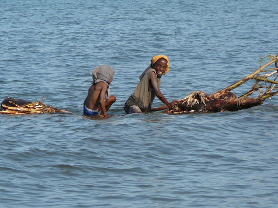 und werde begutachtet von Frauen, die ihre Wäsche und ihr Geschirr im See waschen und kleinen Kindern, die im Wasser spielen.