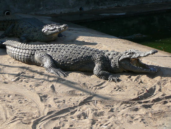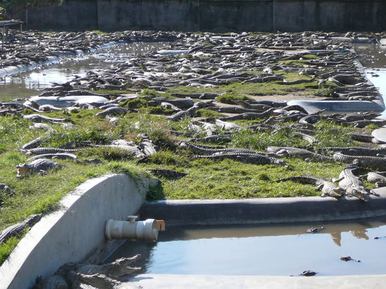Das hatte ich mir anders vorgestellt! Ich dachte eigentlich an Krokodile in freier Natur und nicht an eine Zuchtfarm für den Export der Krokodilhaut. Hauptabnehmer ist übrigens Deutschland, daneben Italien und China, wie uns eine Führerin durch die Farm erzählt. Eine Gruppe von Touris ist gerade eingetroffen und wir schließen uns der Tour an.