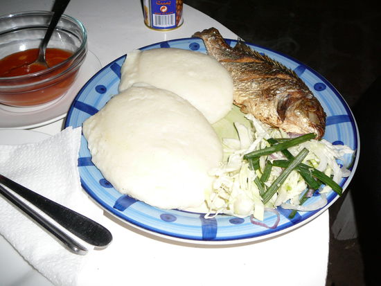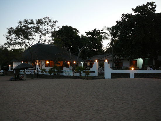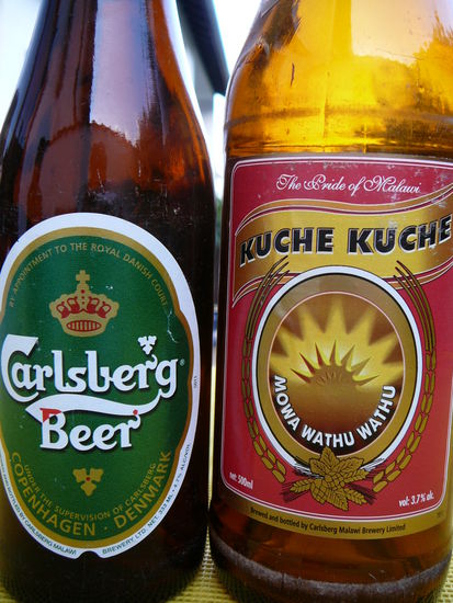 Abends sitze ich unter Bäumen im Restaurant der Lodge, esse Fisch aus dem See und komme mit einigen anderen Touristen an der Bar ins Gespräch. Heute sind auch ein paar Schwarze anwesend, wahrscheinlich Wohlsituierte aus Lilongwe, die das Wochenende lieber hier am See als in der Stadt verbringen. Auch der Besitzer taucht auf. Er kommt aus Sri Lanka und erzählt, dass er gerade zurück ist von einer Tour mit der Crickettmannschaft Sri Lankas, zu der er eingeladen hatte. Er freut sich, dass gerade der Krieg in seinem Land zu Ende gegangen ist, hofft auf Frieden, möchte dazu auch einen Beitrag leisten, aber erstmal will er im Herbst nach Deutschland kommen, zum Oktoberfest nach München. Davon träumt er schon lange. Na dann Prost ! Wir stoßen an. Nicht mit einem Paulaner. Vorerst noch mit einem Carlsberg Green und einem Kuche Kuche.