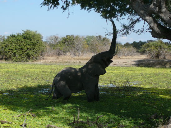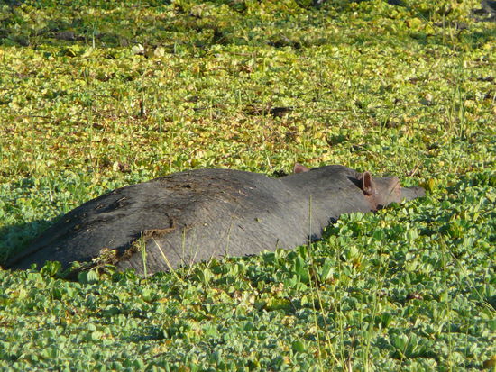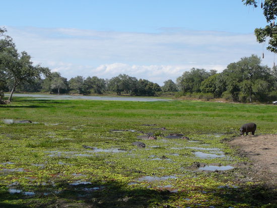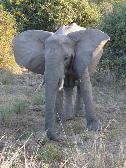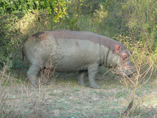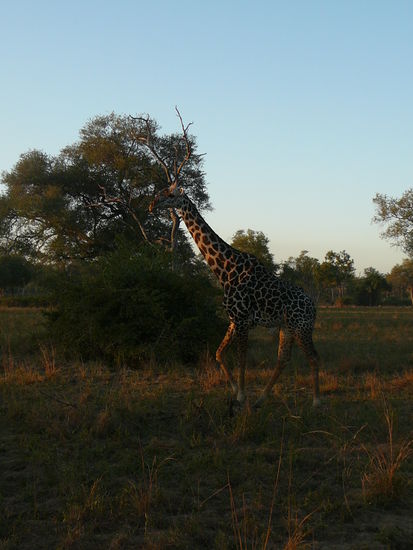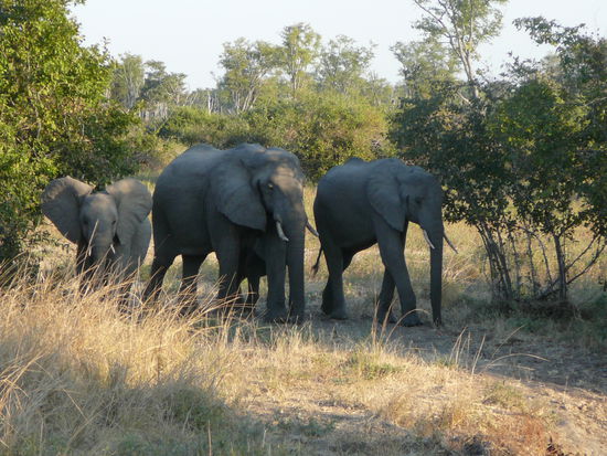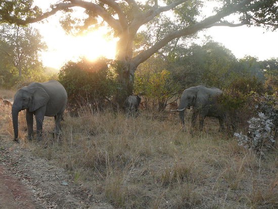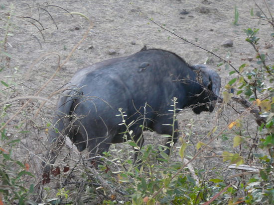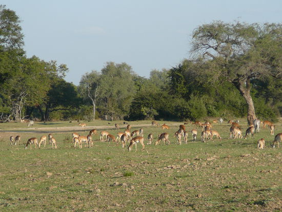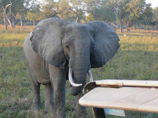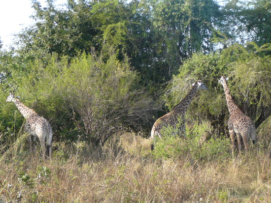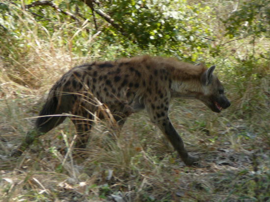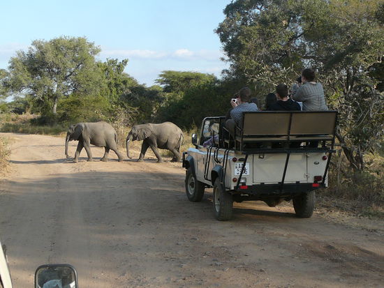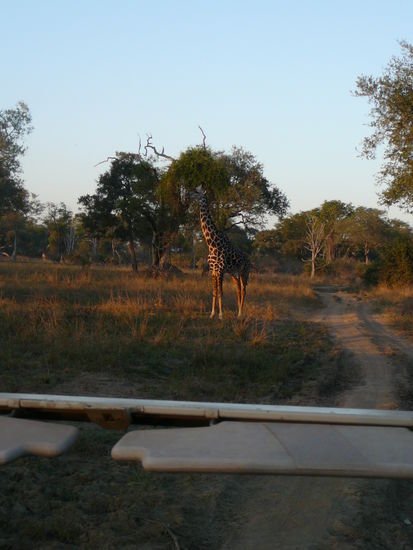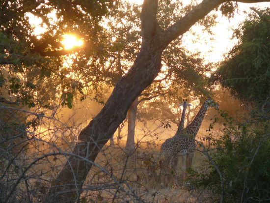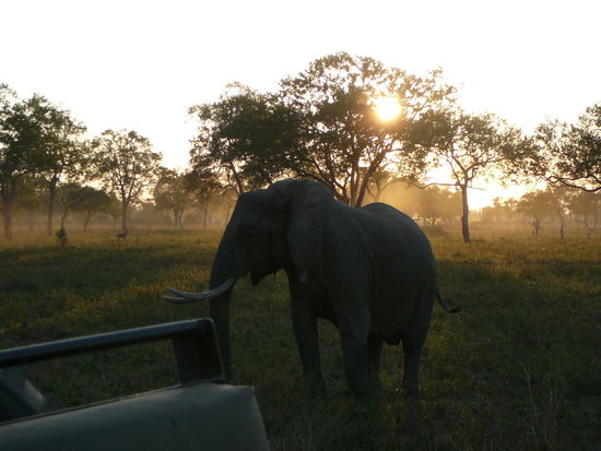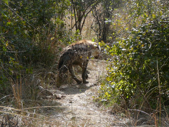 Nur eine Sorte Tiere bekommen wir nicht zu Gesicht: Löwen. Obwohl der Park bekannt ist für seine hohe Löwenpopulation. Unser Guide gibt sich alle Mühe und fährt auf jeder Pirsch ausgiebig durchs Löwengebiet. Wir spüren ihre Fährten auf, wir hören sie, sogar ganz nah, aber wir sehen sie nicht. Schade. Auf jeden Fall aber finde ich es schon mächtig aufregend, bei völliger Dunkelheit im offenen Jeep über Stock und Stein zu fahren und sich vorzustellen, dass jeden Moment ein hungriger Löwe aus dem Gebüsch springen könnte ...