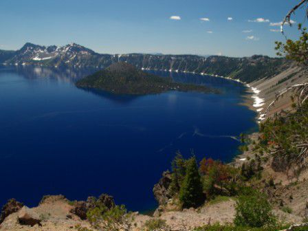 Der See war echt schön und ein voll intensives Blau hatte er und die Wizard Island ein Vulkan der einfach aus dem See ragt...
