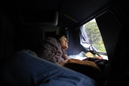 3 qm dunkles Balu wiegen uns in den Schlaf. Waere die Klimaanlage nicht so kalt eingestellt, waere es richtig gemuetlich hier - im Trockenen bei leisem Regentrommeln. Als wir erwachen, scheint die Sonne. Ueberall satte, gruene Huegel soweit das Auge reicht.