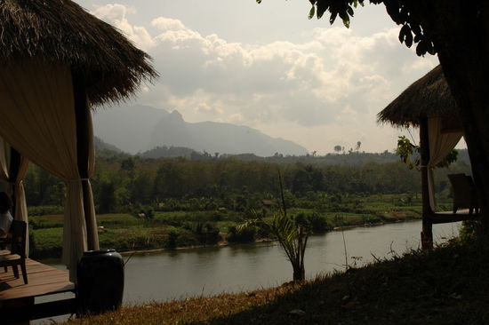 Der folgende Besuch eines Wasserfalls und eines kleinen laotischen Dorfes koennen mit dem Dschungelritt nur schwerlich mithalten. Abgerundet wird der Tag dann aber noch mit einer naechtlichen Kanufahrt zu unserer Lodge. Unter uns die schwarzen Fluten des Nam Khan, ueber uns ein atemberaubender Sternenhimmel.