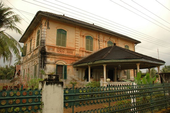 Der schwindende Charakter einer ehemaligen Koenigsstadt wird in Champasak nur noch ganz zart anhand einiger alter, reizvoller Kolonialbauten sichtbar. Ansonsten besteht die Stadt aus einer langgezogenen Strasse, die von windschiefen Holzhaeusern und ab und an einem etwas luxurioeserem Steinhaus gesaeumt ist.