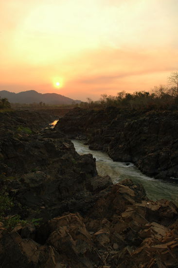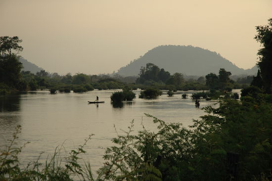 Ganz im Sueden von Laos, direkt an der kambodschanischen Grenze, wird der Mekong so richtig breit - 14 Kilometer an der breitesten Stelle. In der Trockenzeit kommen dann all die kleinen Inseln zum Vorschein, die der Gegend ihren Namen gegeben haben - "Land der 4000 Inseln".