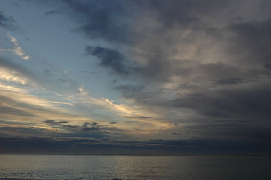 Die ersten Regentropfen nieseln herab, als wir nach unserem Strandlauf gerade wieder den Van erreichen. Dunkle Wolken bedecken den Himmel ueber uns. Wir schluepfen in den Bus und machen es uns unter unserer Bettdecke gemuetlich. Wir blicken auf das Meer, waehrend das Prasselns des Regens immer lauter wird.