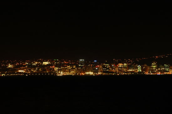 Die erste Nacht in Wellington startet etwas chaotisch, als wir uns auf die Suche nach einem Schlafplatz machen. Eigentlich moechten wir gerne wieder an der Breakers Bay uebernachten, dort, wo wir auch schon die allererste Nacht im Van verbracht haben. Doch kurze Zeit nachdem wir ankommen, stoppt ein geschmacklos aufgetuntes Auto und zwei Halbstarke steigen aus. Man hoert Pfiffe und Schreie am Strand und ploetzlich fuehlen wir uns nicht mehr so wohl. Also gehts fuer uns weiter nach Lyell Bay, einem Surferstrand, an dem wir schon oefter viele Busse haben stehen sehen. Heute ist ausser uns niemand da. Kein Problem, hier bleiben wir. Als wir gerade den Van fuer die Nacht umbauen, ertoent das laute Reifenquietschen eines heranrasenden Autos, dann hoeren wir einen heftigen Aufprall und Glas splittern. Wir sehen einen weissen Pick Up im Halbdunkel, aus dem zwei Typen springen und einen schnellen Fahrerwechsel durchfuehren. Dann rasen sie davon. Was war das denn? Autodiebstahl? Einbruch? Ich will so schnell wie moeglich weg.Wir hieven alle Kisten wieder nach hinten. Als wir aufbrechen kommen uns schon die ersten Polizeiautos mit Sirene und Blaulicht entgegen. Letztendlich uebernachten wir dann direkt an der Oriental Parade am Stadtstrand Wellingtons und haben eine kurze aber ruhige Nacht.