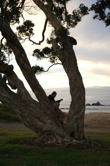 Am naechsten Tag gehts weiter zu den drei Buchten des Otamure Wharanaki Beach Resort. Fast alleine entspannen wir am Ende der Campingsaison unter und in riesigen, alten, wunderschoenen Baeumen auf dem dortigen DOC Campingplatz.