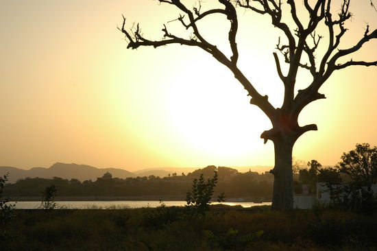 Abendessen bei 007 - Octopussy. Da einige Szenen am Lake Pichola spielen und Bond im Lake Palast in Udaipur uebernachtet hat, wird der Film ueberall fast taeglich voller Stolz gezeigt. Schon absurd, hier auf einer Dachterrasse in Indien zu sitzen bei fried dhal und kingfisher beer und einen Bond/Film zu schauen.