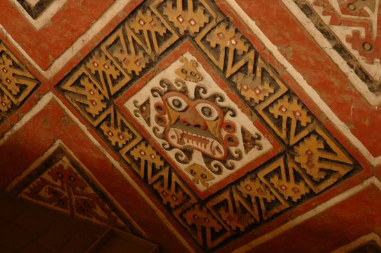 Die Wandgemaelde an den Aussenwaenden des Tempels erzaehlen plastisch die beeindruckenden Geschichten des damaligen Lebens und der grausamen Menschenopferituale.