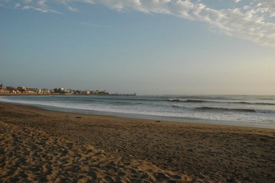 Vierunddreissig Stunden Busfahrt - ein Gewaltritt. Doch wir wollen raus aus den Bergen, wollen an die nordperuanischen Straende ans Meer. Von Cusco aus rollen wir im "Cruz del Sur"-Luxusbus ueber Nacht nach Lima, steigen um und fahren weiter nach Trujillo. Mit dem Taxi dann das letzte Stueck in den einstigen Fischerort Huanchaco, der heute eher Surferort ist. Zumindest im Sommer.
