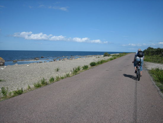 Es wird aber ein traumhaft schöner Sommertag und wir radeln abwechselnd durch Wälder und an der Küste entlang. Öland ist die Radfahrinsel schlechthin- es gibt nur wenige, sehr sanfte Steigungen.