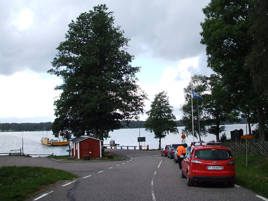 Unser Campingplatz liegt auf der Bolmsöinsel, die auf der einen Seite durch einen Damm und auf der anderen Seite durch eine (kostenlose) Seilfähre mit dem Festland verbunden ist. Direkt neben dem Campingplatz ist der Anleger der Fähre, die halbstündlich dort festmacht.