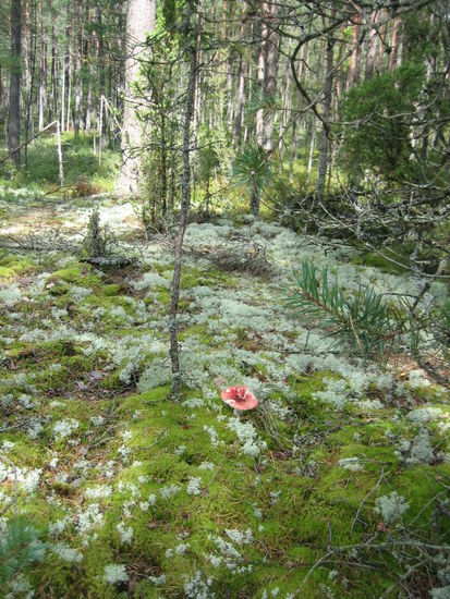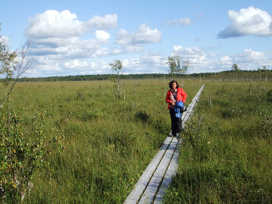 Es geht durch naturbelassene Waldgebiete und auf Holzbohlen über die Moorgebiete. Wir entdecken viele Pilze unterwegs und nehmen die Pfifferlinge natürlich mit.
