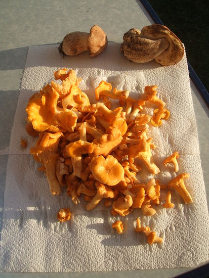 Unsere Pfifferlingsausbeute ist ziemlich groß, so dass wir abends den Speiseplan ändern - frisch schmecken sie doch am allerbesten!