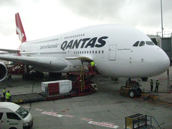 Durch die vielen vor uns gelandeten A380 (wir hatten einen kleineren) waren am Einreiseschalter und am Zoll lange Schlangen. Immerhin sind paar gute Bilder vom neuen Super-Airbus rausgesprungen.